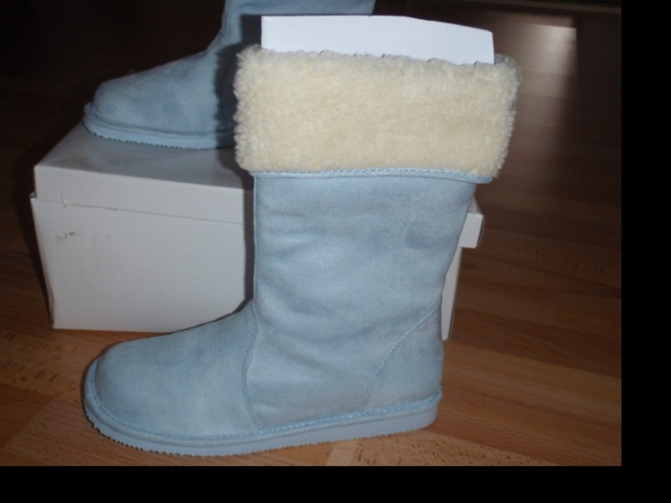 Krásné úplně nové a nenošené válenky, barva je světle modrá, uvnitř kožešina! Botky se dají nosti buď ohrnuté nebo natažené jako vysoké boty! Jsou krásné, ale bohužel mi nesedí, jinak bych je nedala! Moje cena je 370,- vč. pošty!