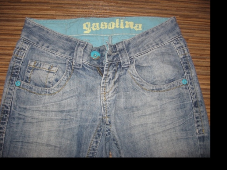 Džíny mají - jak je vidět z fotek, prošoupané nohavice, ale dají se zkrátit na délku 32, čímž se to zakryje, lehce oloupaná barva na knoflíku, jinak jsou v pořádku.