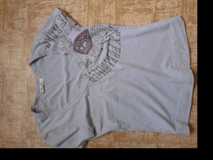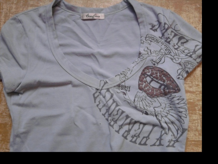 Prodám krásné sv. modré triko s potiskem. Výstřih ve tvaru V. Barva odpovídá fotkám. Cena 100+ poštovné