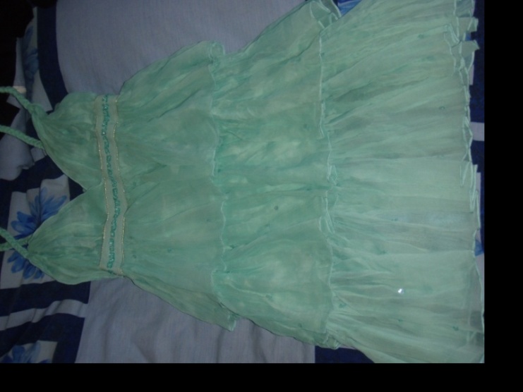 Prodám modrozelené šaty s volánky, koupené v Anglii. 1 krát nošené.