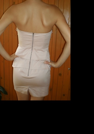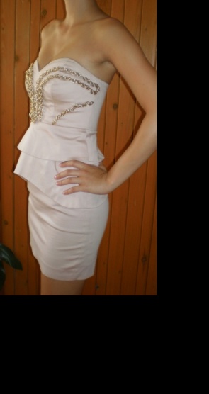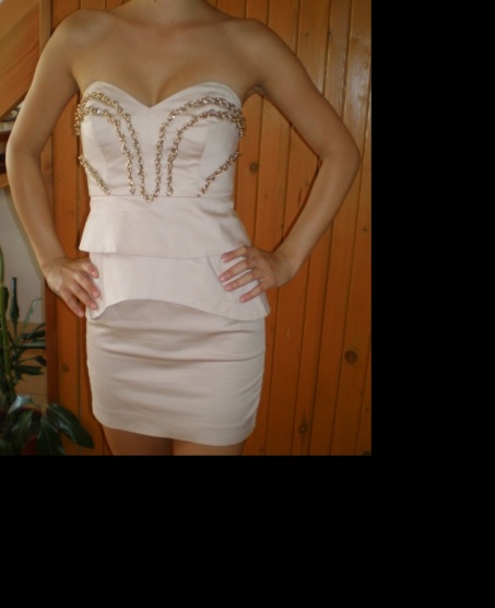 Dvakrát vzaté šaty světlé barvy s řetízkovou aplikací na hrudi. Nevyměňuji. Pište SZ.