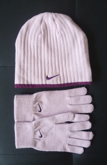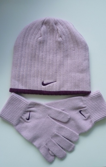 Světle růžové nebo světle fialové rukavice s čepicí, asi 3x nošený, velikost uni.