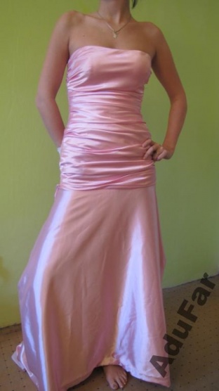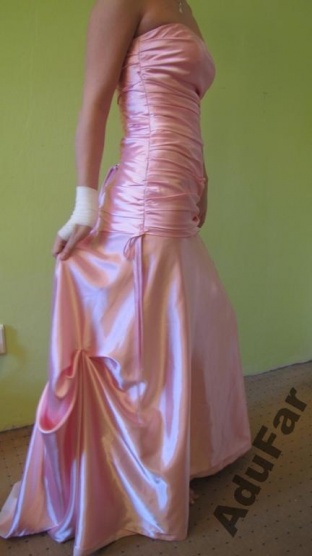 Nabízím plesové šaty bez ramínek, světle růžové barvy, materiál Satén. Od dekoltu k zemi je výška šatů 127cm, v zadu zkrácená vlečka. V bocích velikost do max. 100cm, v pase a přes prsa univerzální - na zádech šněrování. Šaty staré 2 roky, nicméně použity pouze třikrát, pořizovací cena 4000Kč,nyní 1900,-Kč