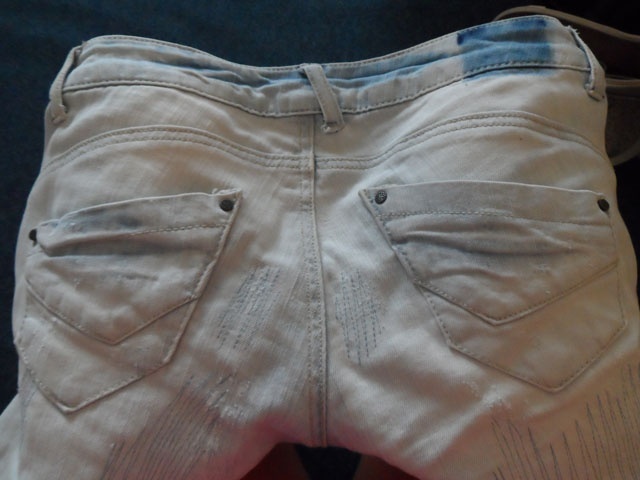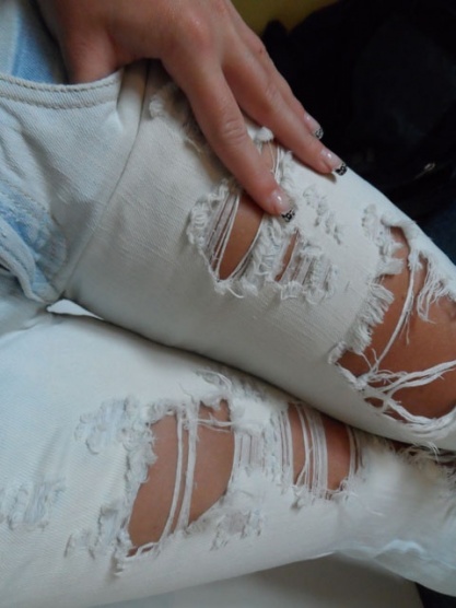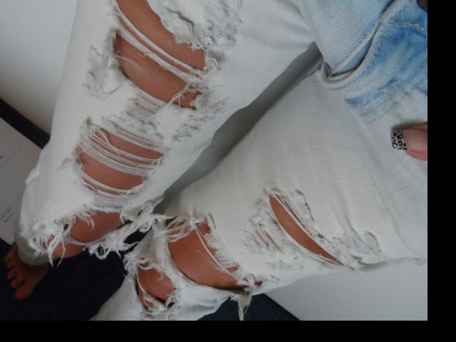 5Opravdu hodně trhané džíny, ideální na letní večery, kdy v nich vynikne opálení. Velikost psaná xs, ale jde spíše o S. Pas 37, délka 98. Bohužel jsou mi velké.