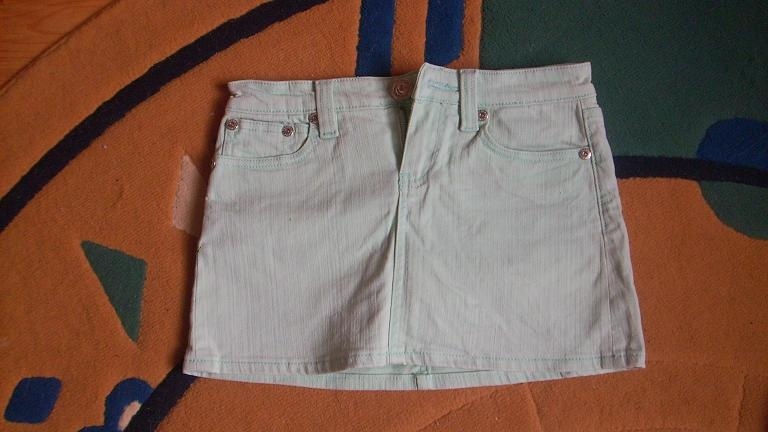Sukeň dříve hodně nošená, ale je v top stavu. Není to na ní vůbec vidět. Není visačka, takže vůbec nevim, kde byla koupená. Vel. je jak 32, tak 34. Míry: přes boky 37 cm, délka 29 cm. Barva je světle zelená, je horší foto, tak to na tom není moc vidět. Cena 99 + poštovné.