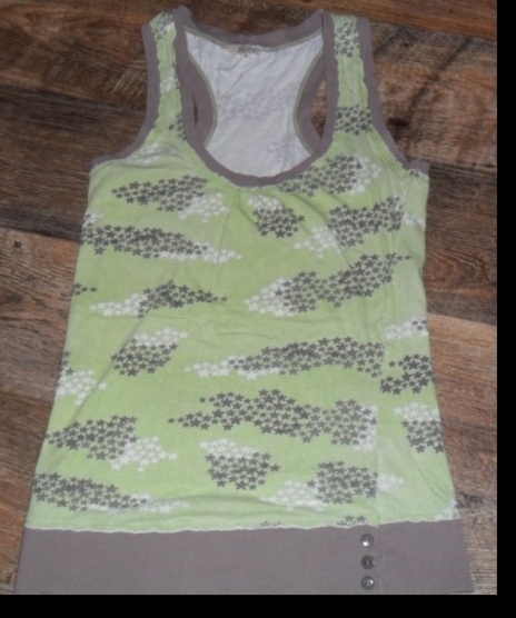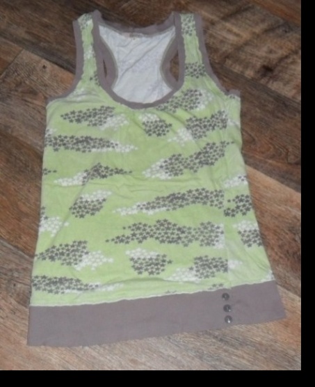 Predám velmi pekné svetlo zelené tielko,na ktorom sú malé hviezdičky velkost XS.Táto velkost sa dá ale zrovnat S/M.Tielko je zo 100percentnej bavlny bez akejkolvek vady.Na spodu tielka sú 3 gombíky(na okrasu
