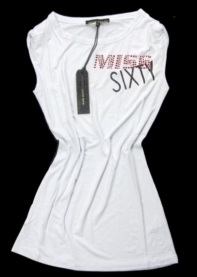 0Prodám krásné nové tílko - tričko Miss Sixty. Bohuzel je mi menší. Je z krásného jemného materiálu. Rozmery: delka 71 cm, šířka přes prsa 42 cm - natáhne se. Pc 1290,-
