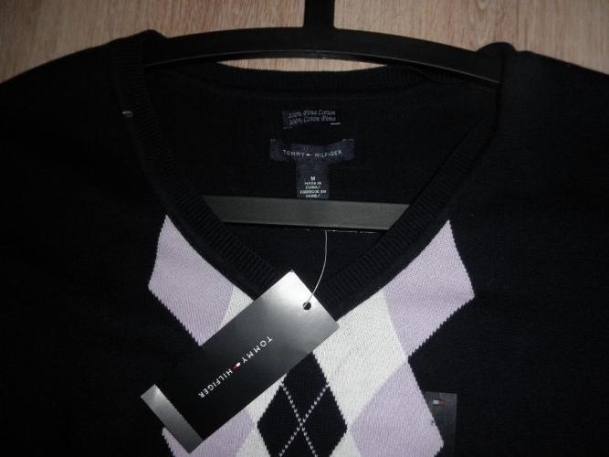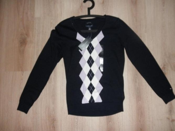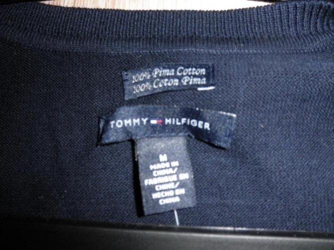 svetr TOMMY HILFIGER tmavě modré barvy s cedulkou zakoupený v usa vel. uvedená M raději přeměřte.