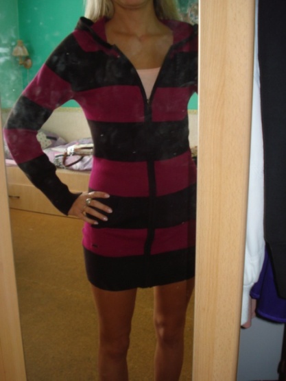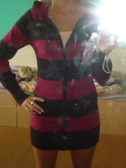 0Nabízím svetřík na zip s kapucí. Je dlouhý, lze nosit jako tuniku. Příjemný materiál.