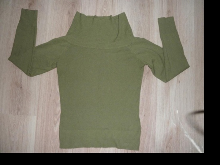 Krásný málo nošený svetřík ZARA vel.L je olivově zelený s velkým roláčkem, je z velmi příjemného materiálu , je pružný, nejsou na něm žádné kazy a míry jsou zde