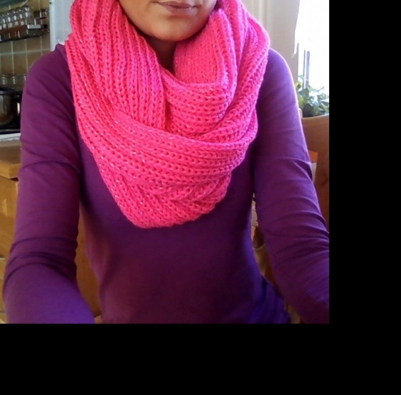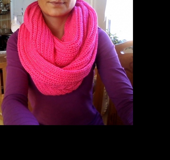 prodám krásnou svítivě růžovou pletenou šálu, sešly se mi dvě, neunosím.