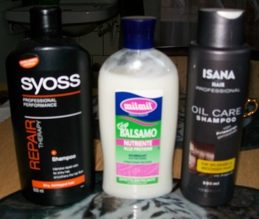 Syoss repair šampon dvakrát použity Isana Oil šampon novýMil Mil kondicioner jednou použitý