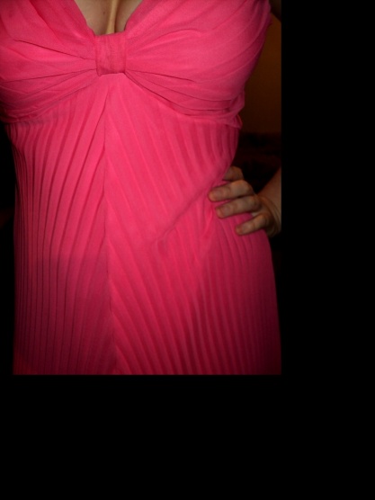 Zářivě růžové skládané šaty na tenká ramínka. Velikost padne na XS a S. Dovezené z Francie. Na mě jsou bohužel moc "růžové"