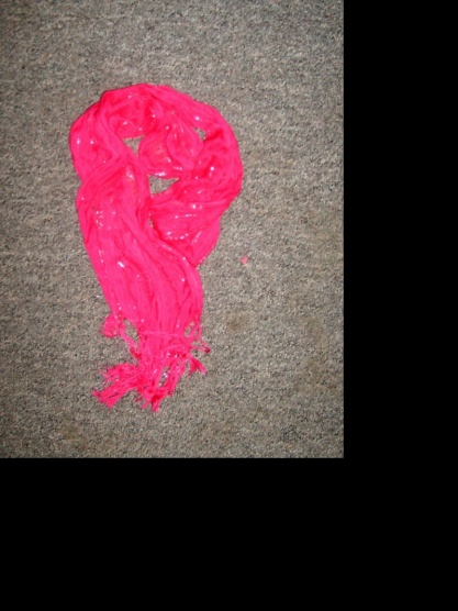 Sytě růžový ( ve skutečnosti hezčí barva,přímo svítí),dole "třapce",vetkané stříbrné nitky 49 + poštovné