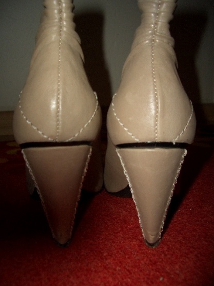 Jarní otevřené kotníčkové boty na stabilním podpatku, v tělové barvě, krásně opticky prodlužují nohy, měla jsem je dvakrát na sobě, ale do práce je mít nemůžu a nemám už moc kam jinam unosit. Nošení je poznat jen vzadu na podpatcích viz foto. Velikost 38 odpovídá. Kůže. Podpatek 9cm. 999,-Kč včetně pošty. Jsou opravdu hodně zajímavé, kupovala jsem je hned v obou dostupných barvách, takže mám i černé. Zájemkyni prosím o SZ, pod vlastní inzeráty koukat nechodím.