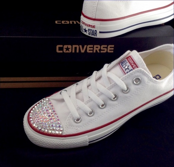 Nové bílé tenisky converse all star chuck taylor white low crystal swarovski, velikost 38, bez vad, neměním