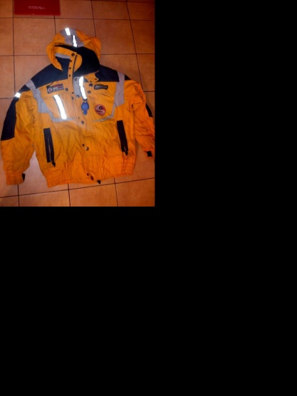 Teplá zimní bunda oranžovo šedo modrá ..párkrát použitá ...v hodně dobrém stavu