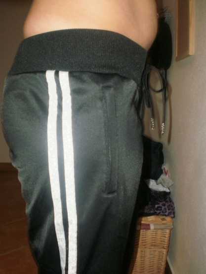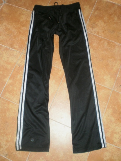 po stranách nohavic 2 stříbrné pruhy široké cca 1cm