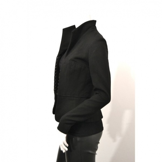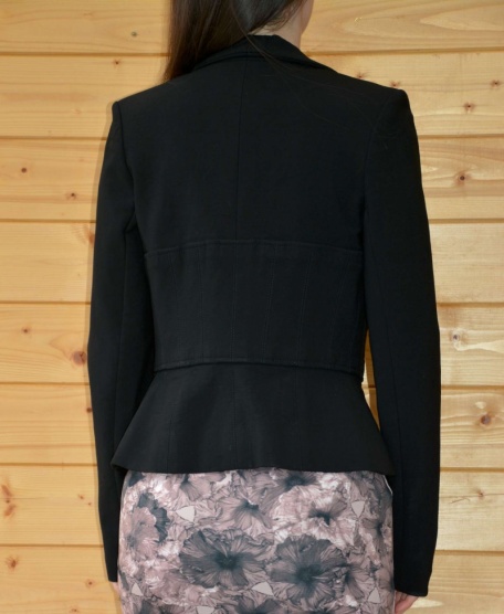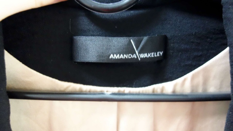 Teplé sako od britské designerské značky Amanda Wakeley ve vel. 34 se zlatou hedvábnou podšívkou a se zapínáním na háčky. Délka 55 cm.Stav 9/10