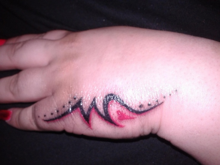 Ale abych nebyla OT-tetování na hřbetu ruky se mi nelíbí(prostě se mi nelíbí to místo), proti tetování nic nemám, a samozřejmě bych se na zakladatelku nedívala zhnuseně, nebo špatně, ale osobně bych si vybrala jiné místo.
