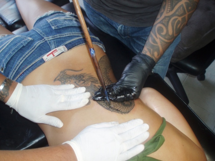 Konzultace jsou zdarma (ještě jsem se nesetkala s tím, že by se za ni platilo, ale záleží na konkrétním salonu). Vysvětlíš tatérovi svoje přání, on to hodí na papír, a pak už budete spolu ladit detaily - co by sis představovala jinak, on ti může dát nové návrhy atd. Někdy je to trošku delší proces, než je zákazník spokojen, ale na těle to budeš nosit ty, takže se neboj vysvětlovat, dokud kérka nebude přesně podle tvých představ. Nakonec ti obrázek obtiskne na kůži, abys viděla, jak bude vypadat výsledek a jde se na věc..