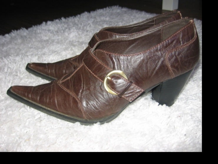 Prodám párkrát vzaté tmavě hnědé kotníčkové koně se zlatou sponou.