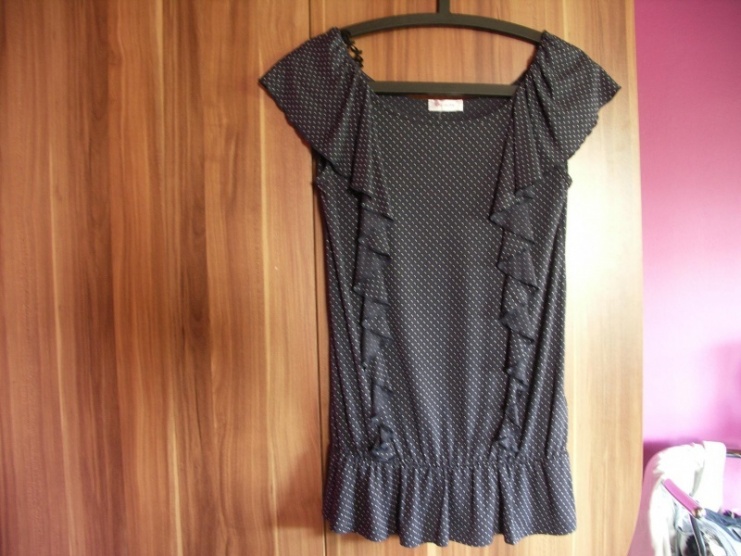Tmavě modré puntíkované tričko s volánky - Orsay
