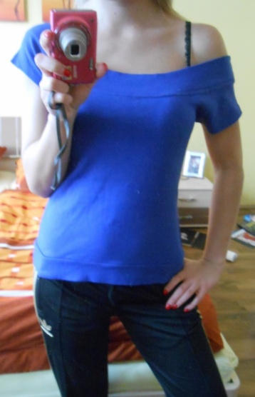 0Nabízím tmavě modré tričko s lodičkovým výstřihem, může být nošeno i normálně nebo se spadlým ramenem. Tričko je ve skvělém stavu, žádné známky nošení. Barva odpovídá druhé fotce.