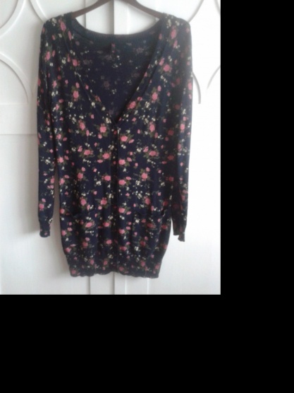 Tmavě modrý květovaný delší svetřík Ann Christine