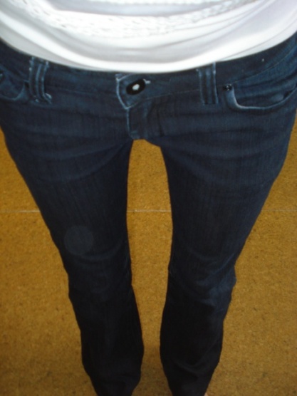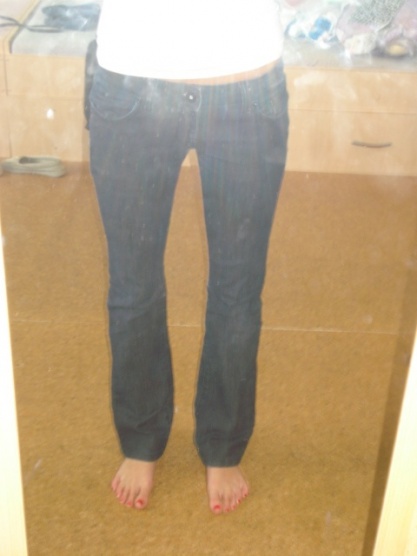 Prodám tyto tmavé rifle. Velikost 36. Jednou nošené. Cena 180 Kč.