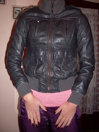 Prodám minimálně nošenou koženkovou bundičku v tmavě šedé barvě z NY.