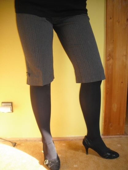 Prodám 3/4 kalhoty vhodné ke kozačkám či lodičkám, které si maminka nechala šít na míru, ale momentálně jsou ji malé, prto posílá dál...Míry na volně položených k. : délka: 64 cm, pas: 39 cm(x2). šířka nohavice těsně pod rozkrokem: necelých 33 cm. Délka rozkroku: 23 cm. Stály ji před rokem 800 kč, navrhuji cenu 200 kč.
