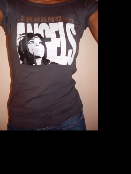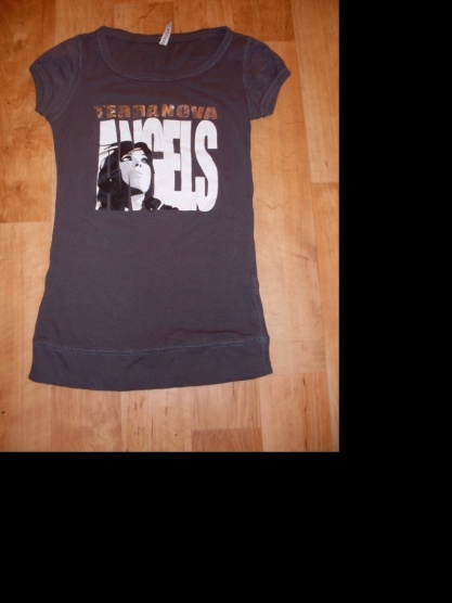 Prodám málo nošené tmavě šedé tričko Terranova s nápisem a obrázkem ženy.