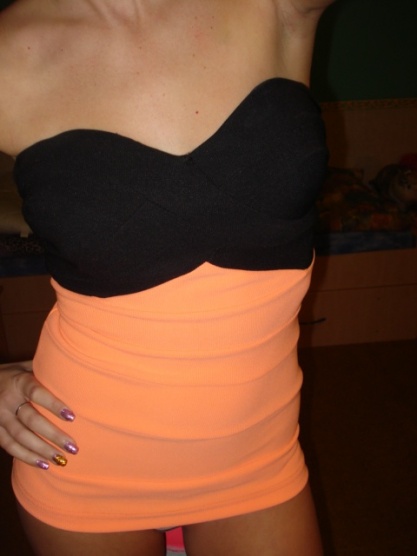 Rozměry: délka: 57 cm, prsa v klidu: 34 cm. Natáhne se.