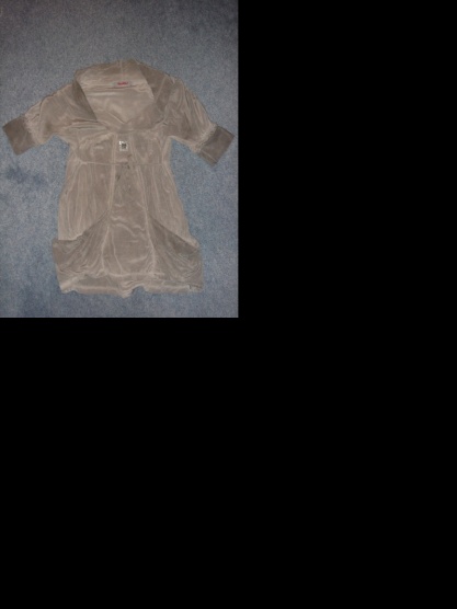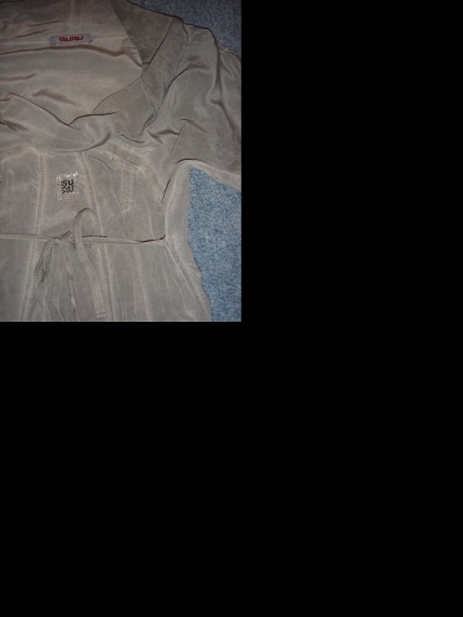 Prodám zcela nový nenošený top značky Guru ve vel.S. Je šedé barvy ze 100% hedvábí, tudíž je velmi lehký a jemný a je delšího střihu. Má 3/4 rukávy, balónový střih s aplikací na prsou, dá se uvázat pod prsy nebo naopak na zádech, je velmi efektní. Byl zakoupen v OC Palladium v prodejně Guru. Rozměry: délka od ramene: 65cm, obvod přes prsa:42 x2 cm. Původní cena byla 2800KČ, cena nyní 800KČ plus poštovné