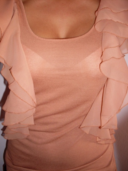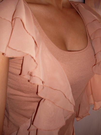 Po stranách a na ramenou volány.