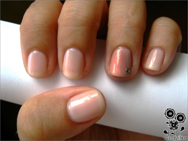 Jinak mě se to líbí, sama, když mám třeba francii a dávám si na ní razítko, tak ho dávám třeba jen na dva prsty. Dneska jsem zkusila dvě růžovky, moc to není vidět, na prsteníčku mám tmavší růžovou. Pak mě napadlo přidat ještě kamínek, takže jedna fotka bez a druhá s
