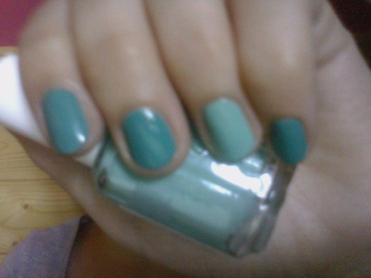 přikládám dnešní lakování, foceno webkou, nic moc kvalita, použité laky jsou Maybelline mini colorama odstín Urban turquoise a Essie turquoise & caicos.