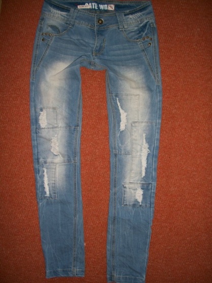 Nové, nenošené džíny zn. Gate, velikost 38, zajímavě řešené, záplaty doplněné trháním. Míry : délka 102cm, pas 39-42cm, boky 46-49cm, přední sed 19cm. Cena 250Kč včetně doporučené pošty.