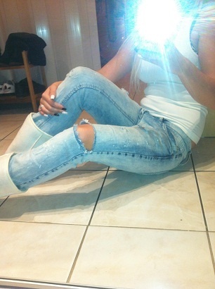 nabízí svetlé trhané džíny značky Denimvel 36-38 vel Sodpovídánemením jen prodejmnoho detailu,trhání atd