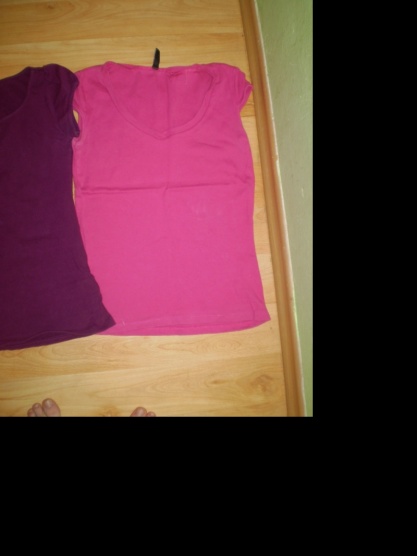 Třetí tričko růžové je párkrát použité ale také v dobrém stavu, bez jakéhokoli poničení. Má výstřih do V a na postavě vypadá pěkně. Značka Fishbone