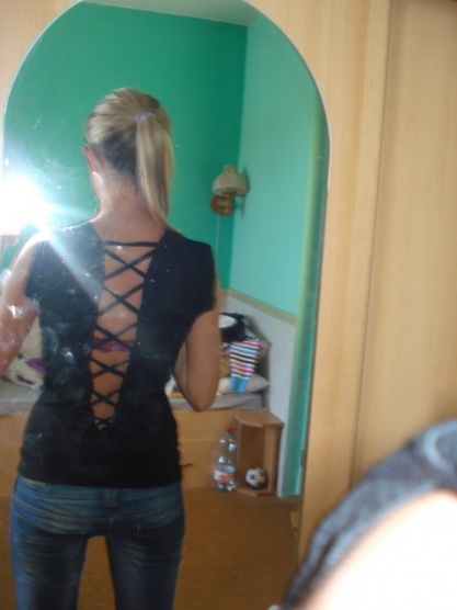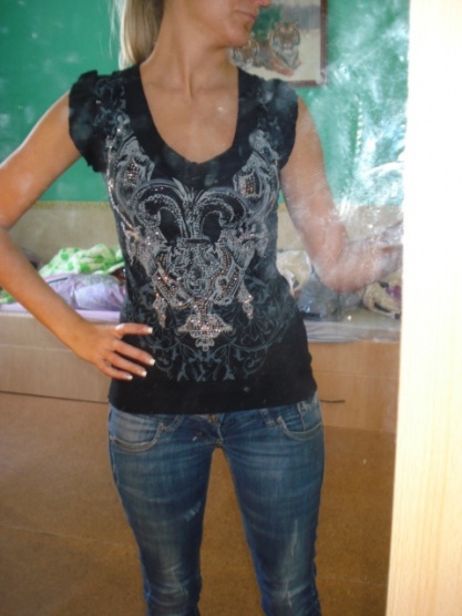 0Nabízím nové tričko se stříbrným potiskem a holými zády. Je nenošené, jen odstřihnuty cedulky.