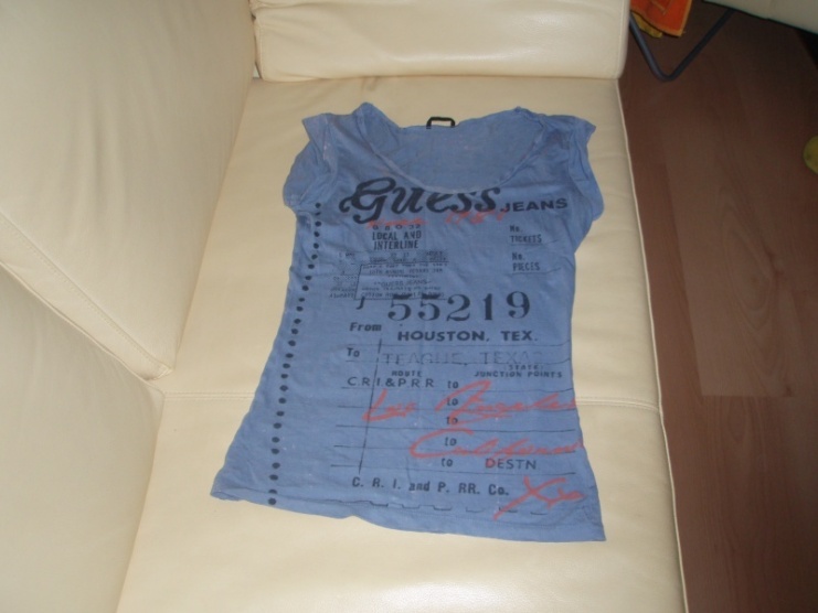 Dvakrát vzaté tričko Guess, zakoupené v pražském obchodě Guess v Palladiu před třemi týdny. Originální džínová barva. PC - 1700,-