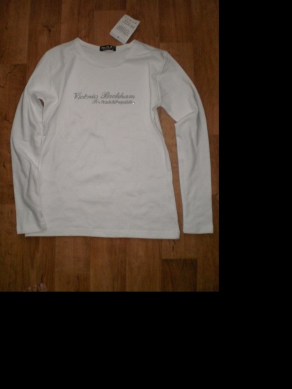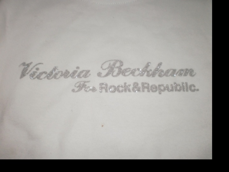 je bílé se stříbrrným nápisem Victoria Beckham for rock a republic.