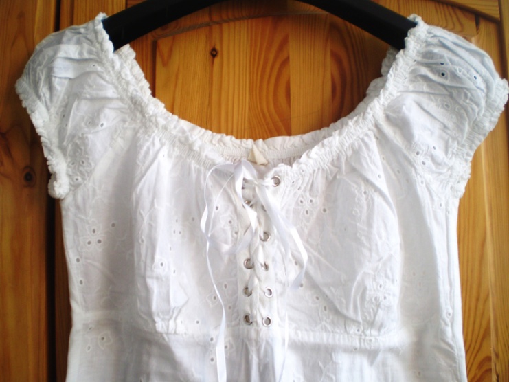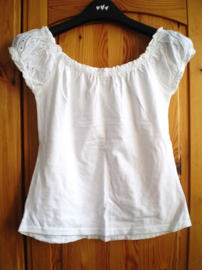 Bílé tričko s ozdobným vázáním, ze 100% bavlny, Velikost M. Tričko má přes prsa je 38cm a délka je 42cm...