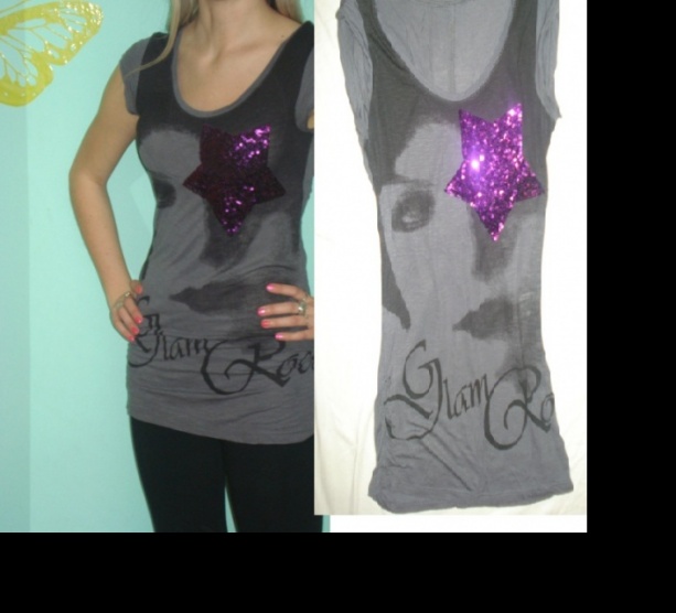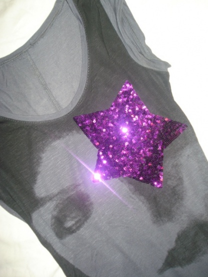Na přední levé straně má fialovou flitrovou hvězdu, která tričku dodává šmrnc.
