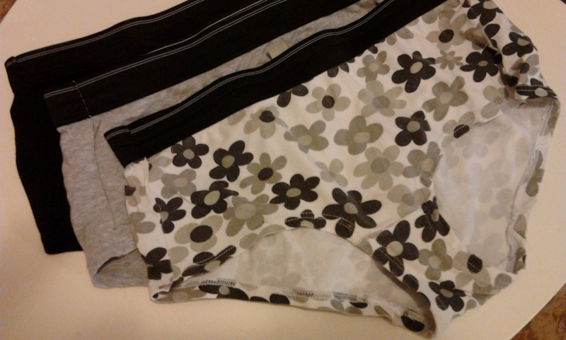 0Sada tří nenošených 100% bavlněných kalhotek. Velikost mezi 38 a 40.