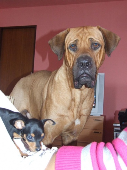 Holky, Vaši pejsani jsou nádherní! Taky vložím fotky svého prcka. Super jsou ty fotky mrňousků s jejich velkýma kámošema