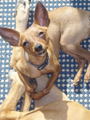 zdravím všechny milovnice a milovníky tohoto plemene.... nejlepší pejsek co znám...máme v pořadí už čtvrtého... když nám umřel první plakali jsme jak malé děti a přísahali, že už nechceme ani rybičky...nevydrželi jsme ani měsíc...dnes máme ratlíčka neboli něm. pinče skoro 11 let.... těší se dobrému zdraví, vloni byl na operaci moč. kaménků a nevěřila jsem , že člověk může mít tolik obav o život milovaného pejska, všechno vydržel a druhý den běhal jakoby nic, jen z bříška mu visely červené bavlnky...sešitá rána... byl slavnej v celé rodině..jmenuje se Bodinek a zkusím sem vložit nějakou fotografii