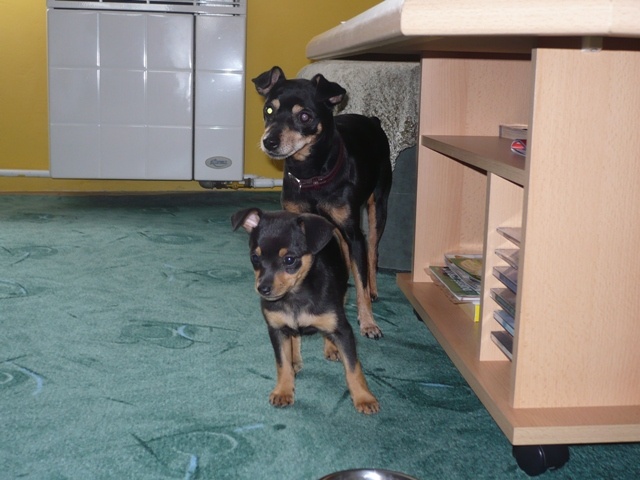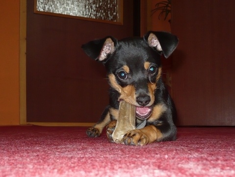 já mám rasu trpasličího pinče. Chtěla jsem jen na úvod podotknout, že pražský krysařík a trpasličí pinč není jedno a to samé. Krysařík je zatím neuznané plemeno FCI, má menší velikost, nižší váhu, jiný čumák a stojaté uši, zatímco pinč má uši klapaté, váhu 5-6 kg a výšku 25-30 cm.